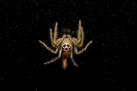 Jumping spider gold on black background.