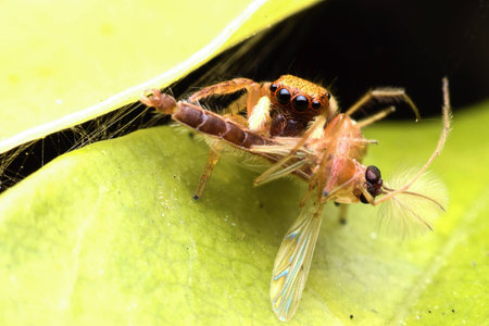 Evarcha arcuata jumping spider feeding drosophila fly