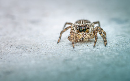 Close up a colorful jumping spider on cement floor, Selective focus, macro shot, Thailand.