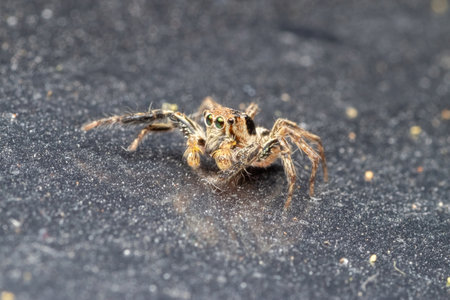 Jumping spider Female Plexippus petersi on cracked surface