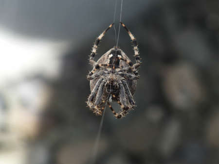 spider making a web close up.