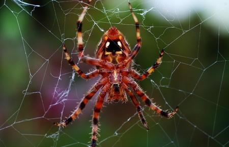Macro photography spider on net with back blackground
