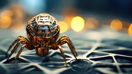 A golden spider sitting on top of a metal object, AI