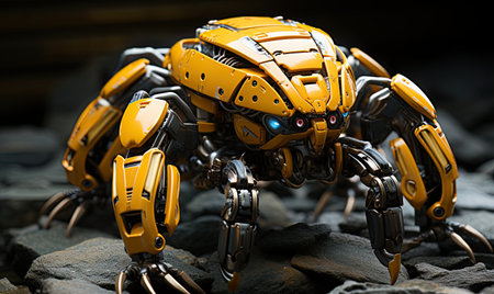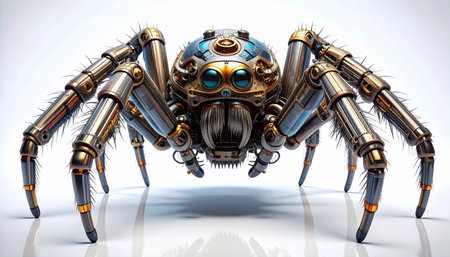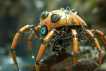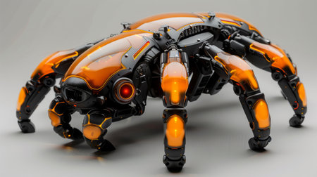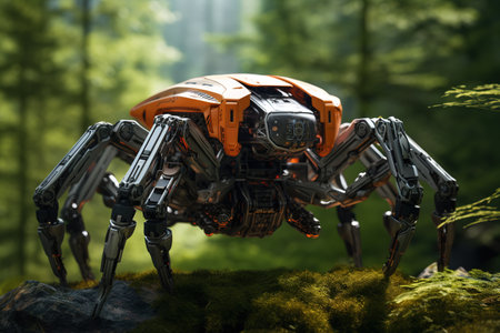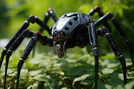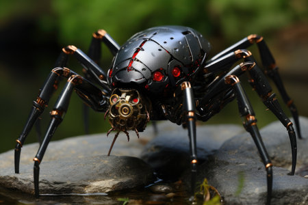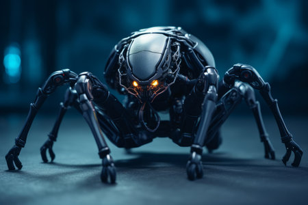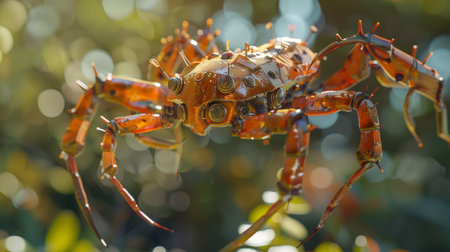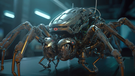 Futuristic robotic animal. Wildlife mechanical spider insect with integrated nanotechnology. Future robot technology concept