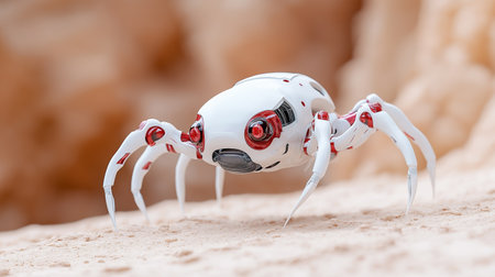 The robotic scorpion scuttles across the floor, its mechanical movements precise and calculated. designe