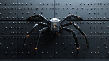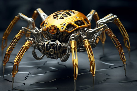 robotic spider-like nano machine on a metal surface, created with generative ai