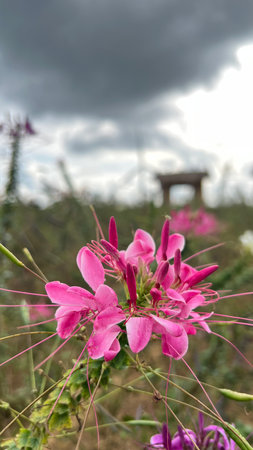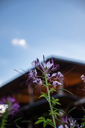 Spider flower flowers blooming in beauty cozy home flower garden on the rainy season.