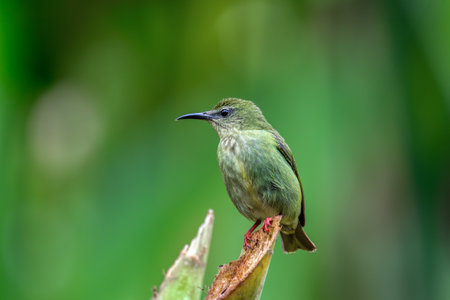 Female of Red-legged honeycreeper (Cyanerpes cyaneus), small songbird species in the tanager family (Thraupidae), La Fortuna, Volcano Arenal, Wildlife and birdwatching in Costa Rica.