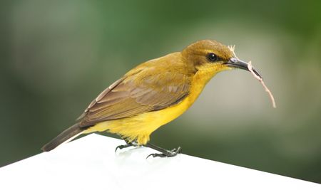 Olive-backed Sunbird building its nest