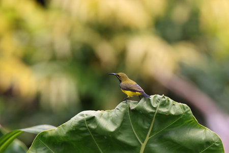 Little sunbird sitting on a green leaf in the garden,Thailand