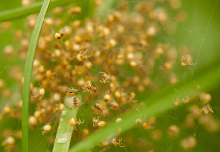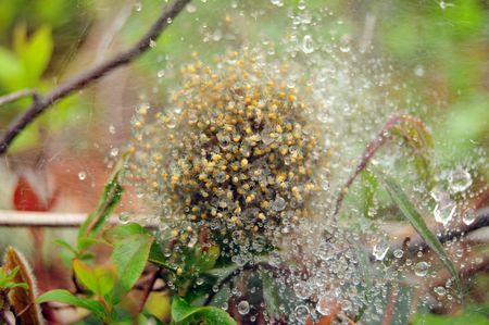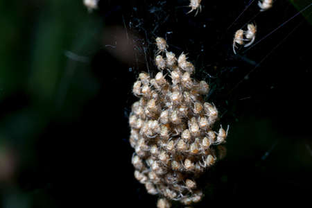 Colony of newborn spiders. A bundle of Araneus diadematus spiderlings.