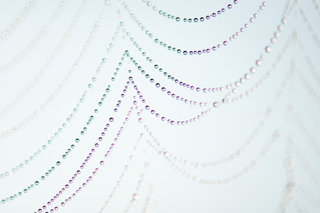 Close up abstract art macro photography of cobweb or spiderweb with rain or dew water drops in the morning fog. Natural abstract background.