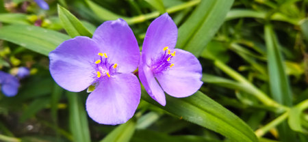 Tradescantia ohiensis (Common spiderwort) flowers. Commelinceae evergreen perennial plants native to North America. Purple three-petaled flowers bloom from May to July.