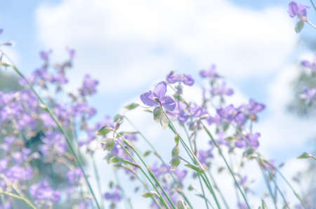 Murdannia giganteum on blurry background is a small purple wildflowers in Thailand.