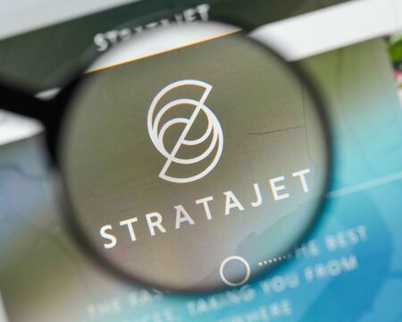 Milan, Italy - August 20, 2018: Stratajet website homepage. Stratajet logo visible.