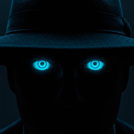 Mysterious concept of an invisible man wearing only visible clothes like a hat, glasses, and trench coat in a surreal setting.