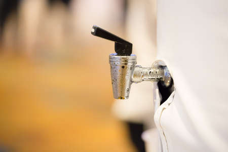 A white tap on the pot for mineral water for domestic use. Selective focus.