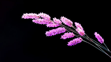 A delicate arrangement of dried ornamental grass with thin stems and fluffy spikelets dyed in vibrant pink and purple hues.