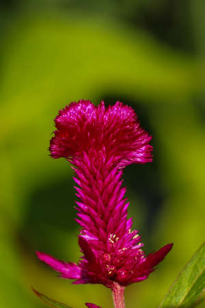 Cock's comb plant flower isolated against the green soft background, close up detailed photograph of the beautiful nature, early morning light hits and glow one side and create a shadow on other side.