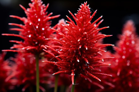 A stunning close-up capture of rich red amaranth flowers alongside a vibrant pod, perfect for showcasing nature's beauty and vibrant colors in any design.