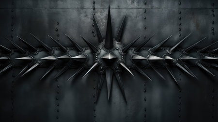 A low-angle, black and white shot captures the menacing and intimidating presence of a row of sharp metal security spikes.