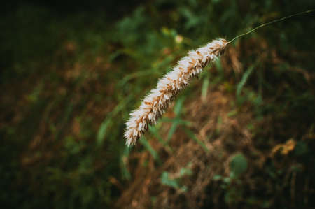 dry grass stem with fluffy inflorescence. Macro photography. Layout for design.