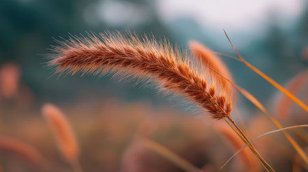 A stunning close-up of an orange grass spike showcases its delicate texture, set against a softly blurred background, capturing the beauty of nature's tranquility.