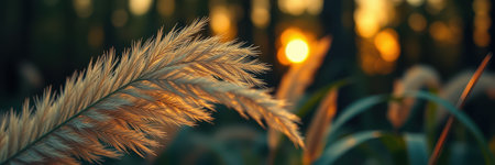 This image features tall grasses swaying gently in the breeze, bathed in soft sunlight during sunset, creating a tranquil atmosphere perfect for nature lovers.