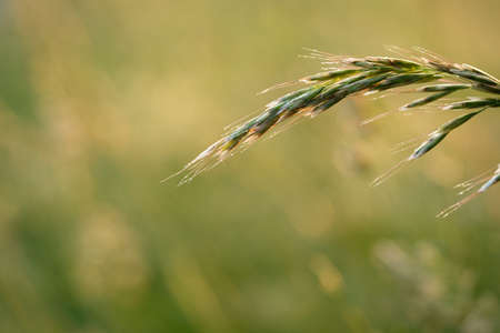 Beautiful Meadow Field with spikelets plants. Summer in Belarus.