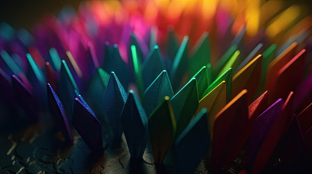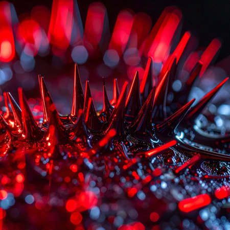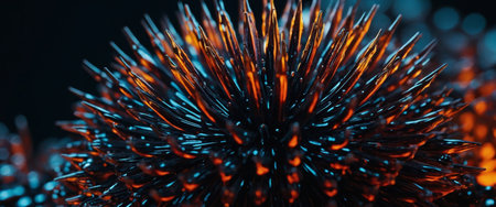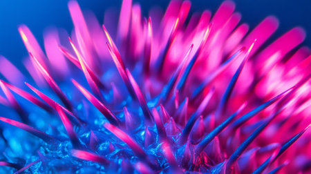 AI Generated. Close-up view of ferrofluid spikes illuminated by neon light, showcasing magnetic properties