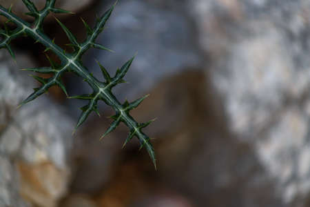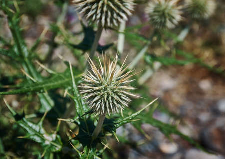 Dry prickly stem and inflorescence of thistle. Thistle, Onopordum acanthium.