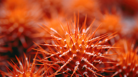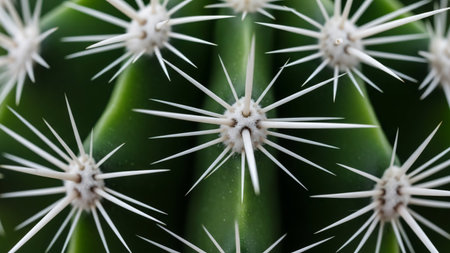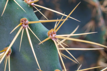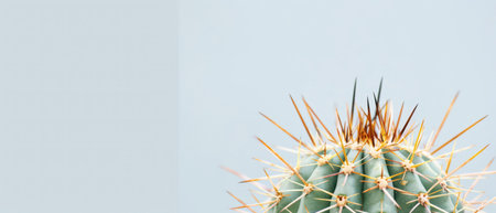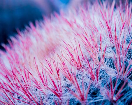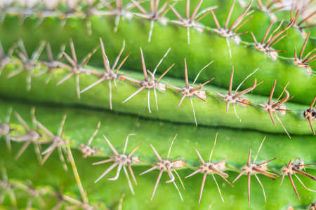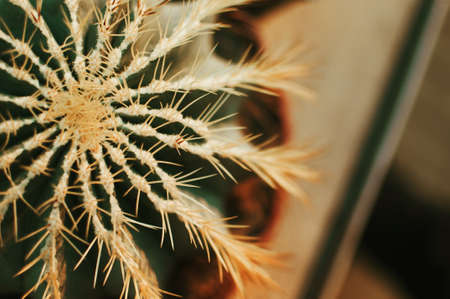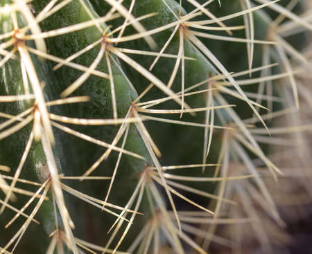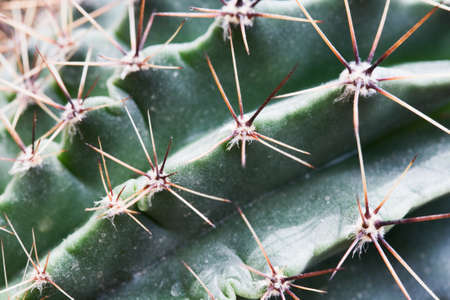 Cactus background with spikes. Top view. Copyspace. Selective focus.