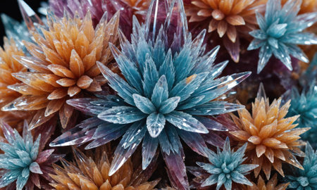 A close-up view of colorful crystals forming a unique pattern, capturing the beauty of their delicate structure