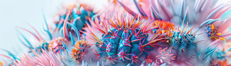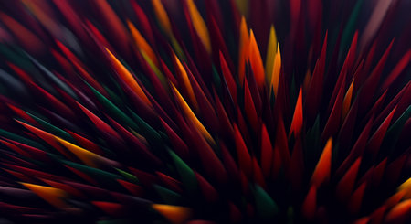 This abstract artwork features a fiery red landscape filled with sharp spikes, creating an intense and dynamic atmosphere. The captivating patterns evoke a sense of an alien world, emphasizing surreal beauty.
