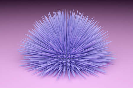 A close-up shot of a purple sphere with a spiky texture against a pink background.