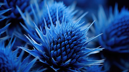 Macro shot showcasing the detailed texture and patterns of a vibrant blue cactus against a dark background