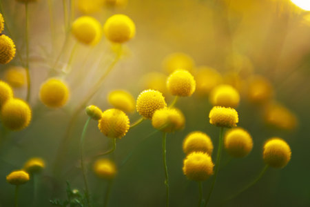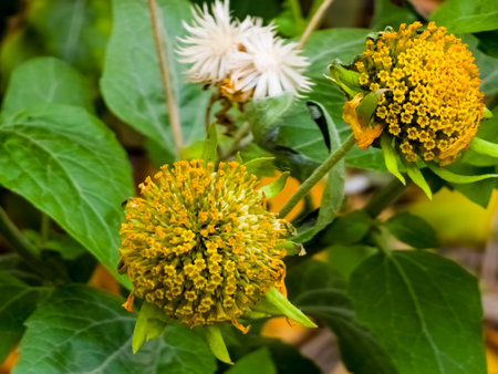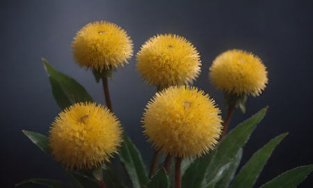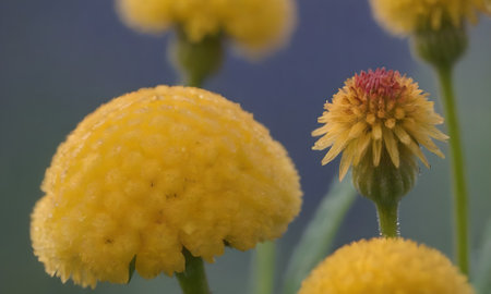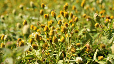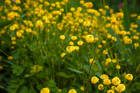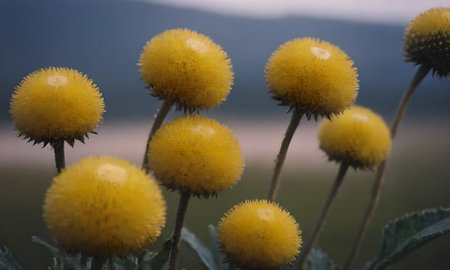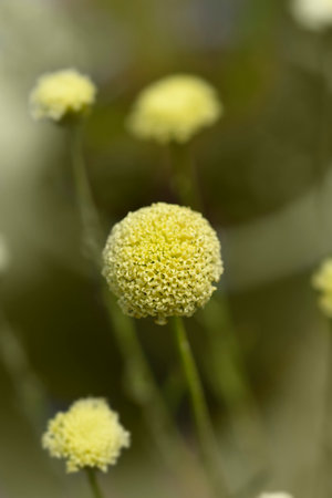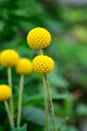 A closeup of Craspedias in a garden under the sunlight with a blurry background