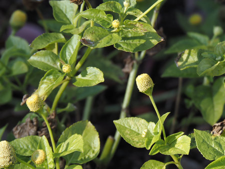 Para cress, Tooth-ache plant, Toothache plant, Brazil cress toothache plant, Pellitary, Spot flower. (Scientific name Acmella oleracea)