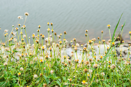 Mexican daisy, Tridax daisy, Wild Daisy on blur background.