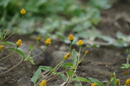 Acmella paniculata (Jotang, getang, gulang, egetan, srunen, seruni sapi). The bulbs of this plant are used to treat toothache and mouth ulcers