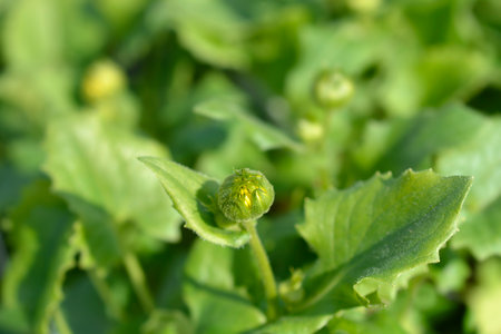 Leopards bane yellow flower bud - Latin name - Doronicum orientale Leonardo Compact