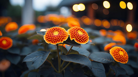 Twilight Bloom: Luminous Orange Flowers Basking in the Warmth of Evening Lights