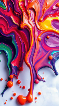 Colorful abstract liquid paint flows across a canvas creating vibrant patterns and textures in an artistic display