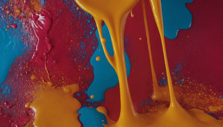 Vibrant wet ink splashes creating glossy textures in an artistic setting