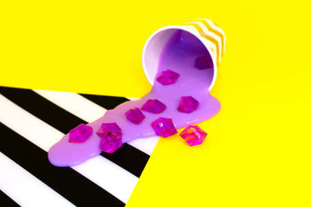 Confetti in the shape of stars poured out glasses. Christmas and new year background. Top view.