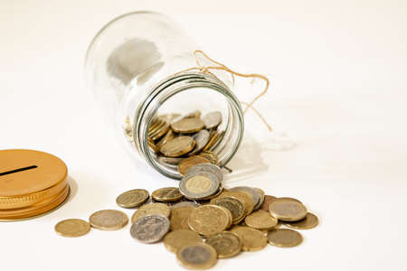 Financial concept, A malaysia ringgit coin in transparent glass bottle isolated white background