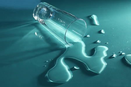tablets. Water is spilled and medical capsules are scattered. ambulance. Pill poisoning. Dropping pills and a glass of water from the hands.