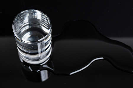 a glass of water spilled on a white table