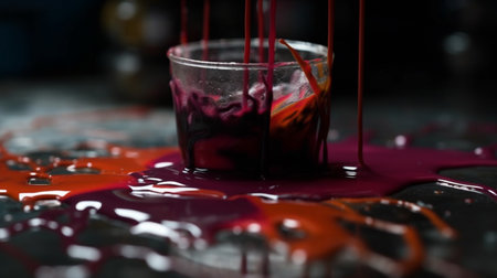 Spilled pink paint on a dark surface, vibrant color splash. Art and creativity concept