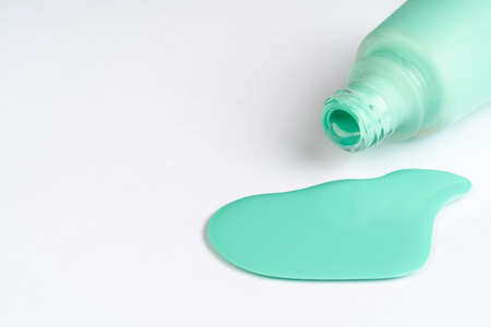 Green isolated cleansing gel for washing things on a white background with copy space top view.